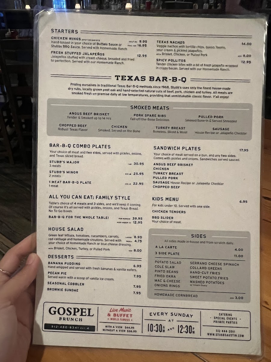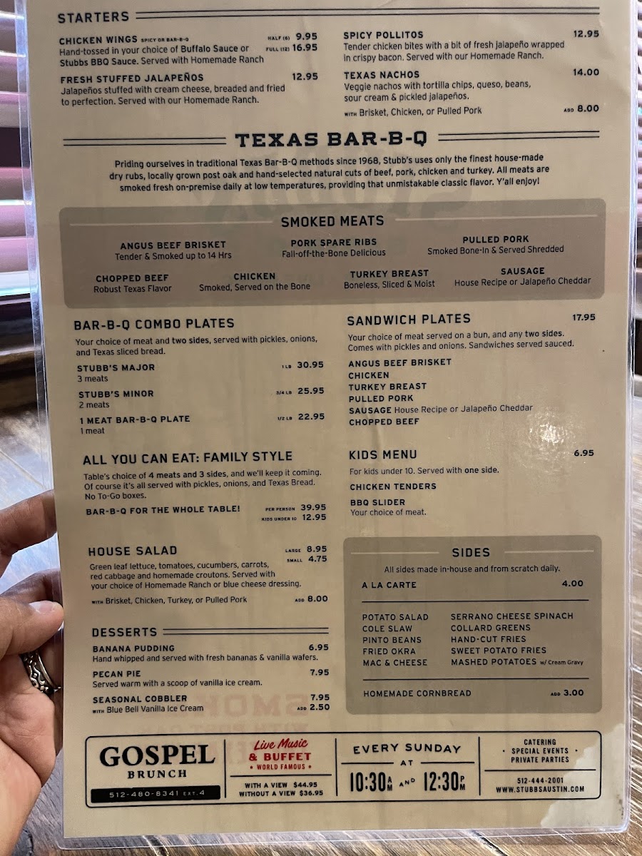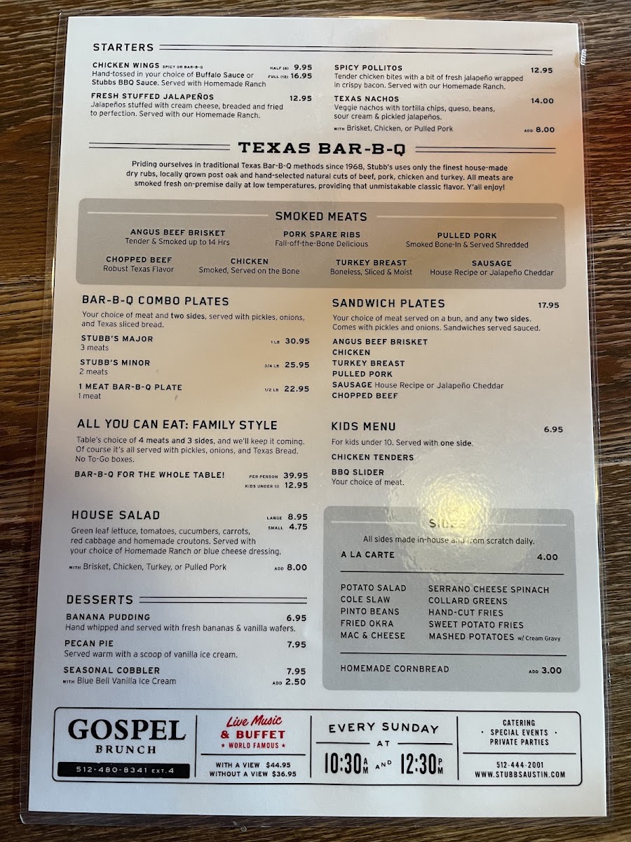 Located in the heart of Austin, Stubb's Bar-B-Q is a culinary gem renowned for its rich BBQ heritage and live music ambiance. The menu features mouthwatering starters like hand-tossed chicken wings and stuffed jalapeños, perfect for igniting your taste buds. The all-you-can-eat family-style BBQ meal is a standout, allowing diners to indulge in a selection of four meats and three sides, all served with traditional Texas bread.